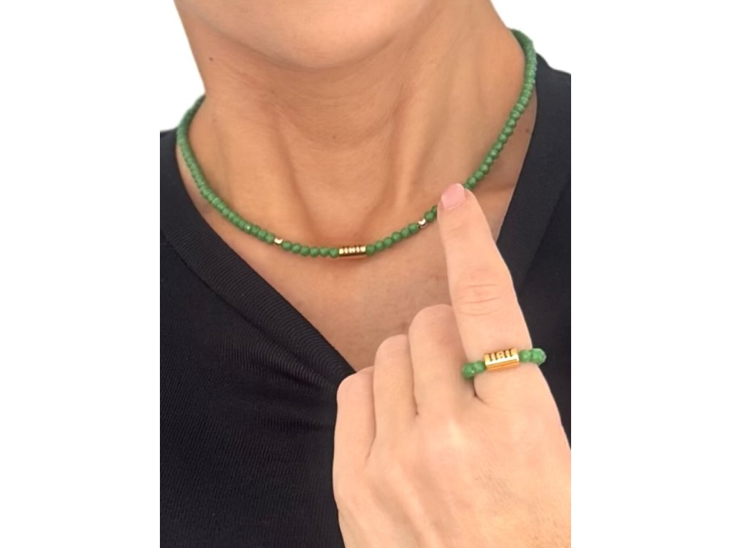 The green cut stones represent the energy of abundance, growth, and the heart chakra. They help harmonize emotions, attract prosperity, and maintain balance in life. Their shine reflects light, reminding us that every moment is an opportunity for a bright new beginning.