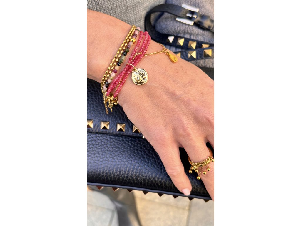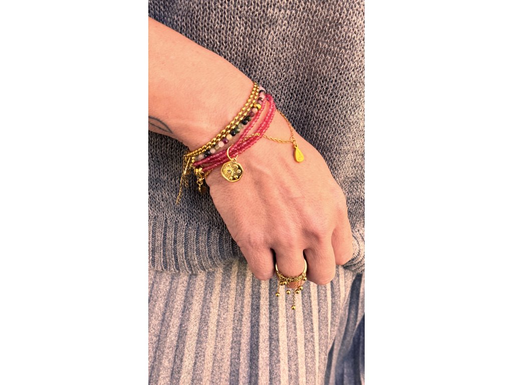 An elegant three-row bracelet with rubies and gold elements, created as a talisman of happiness, abundance, and self-confidence.