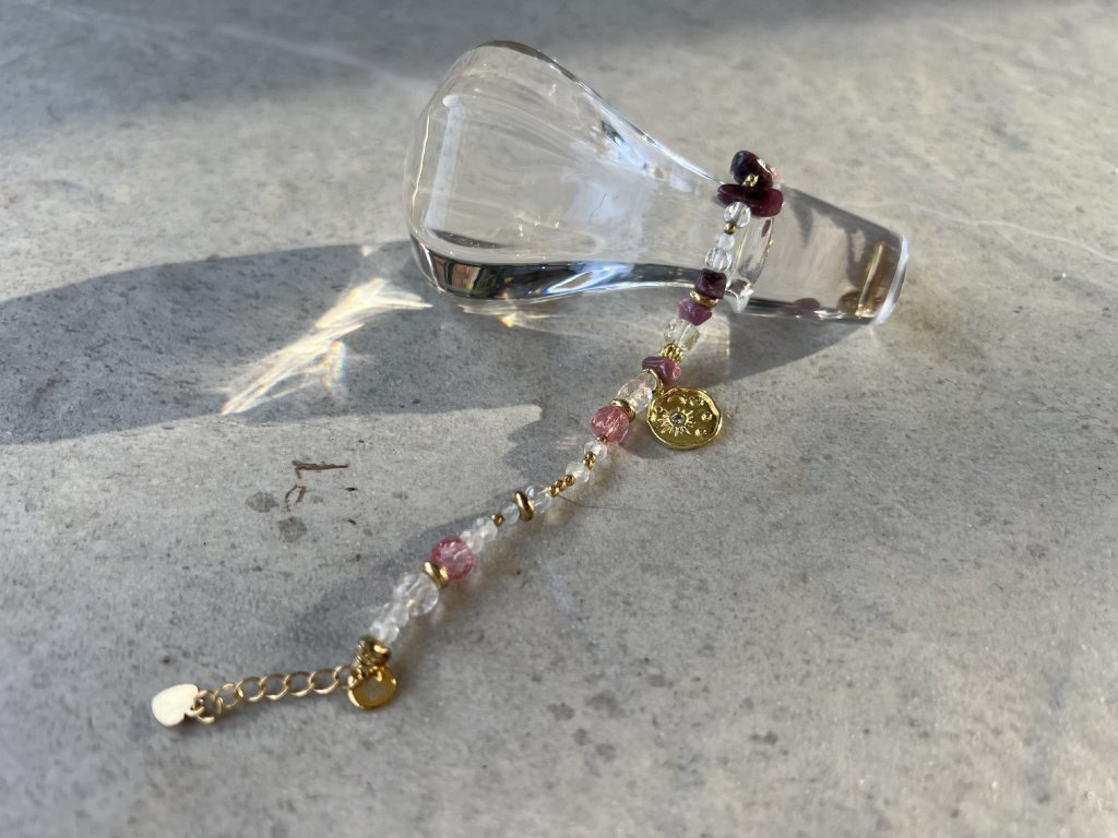 The handmade "Sun Harmony" bracelet is a jewel that combines the delicacy of nature and the power of light. It was created from a harmonious combination of amethyst, rose quartz, rock crystal, and gold details—each element carefully selected for balance and beauty. The dominant gold detail in the form of a sun symbol represents inner radiance, hope, and new beginnings.