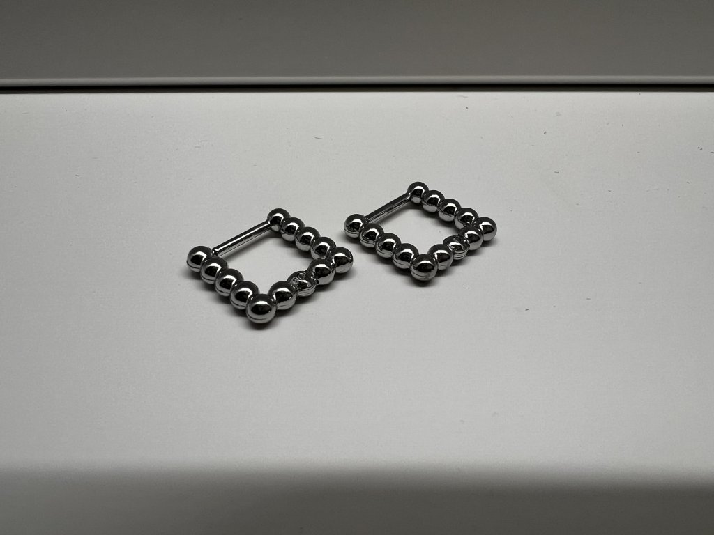 Elegant and timeless earrings decorated with delicate beads. Their geometric double square design looks stylish and minimalist at the same time – the perfect accessory for both daytime and evening outfits.