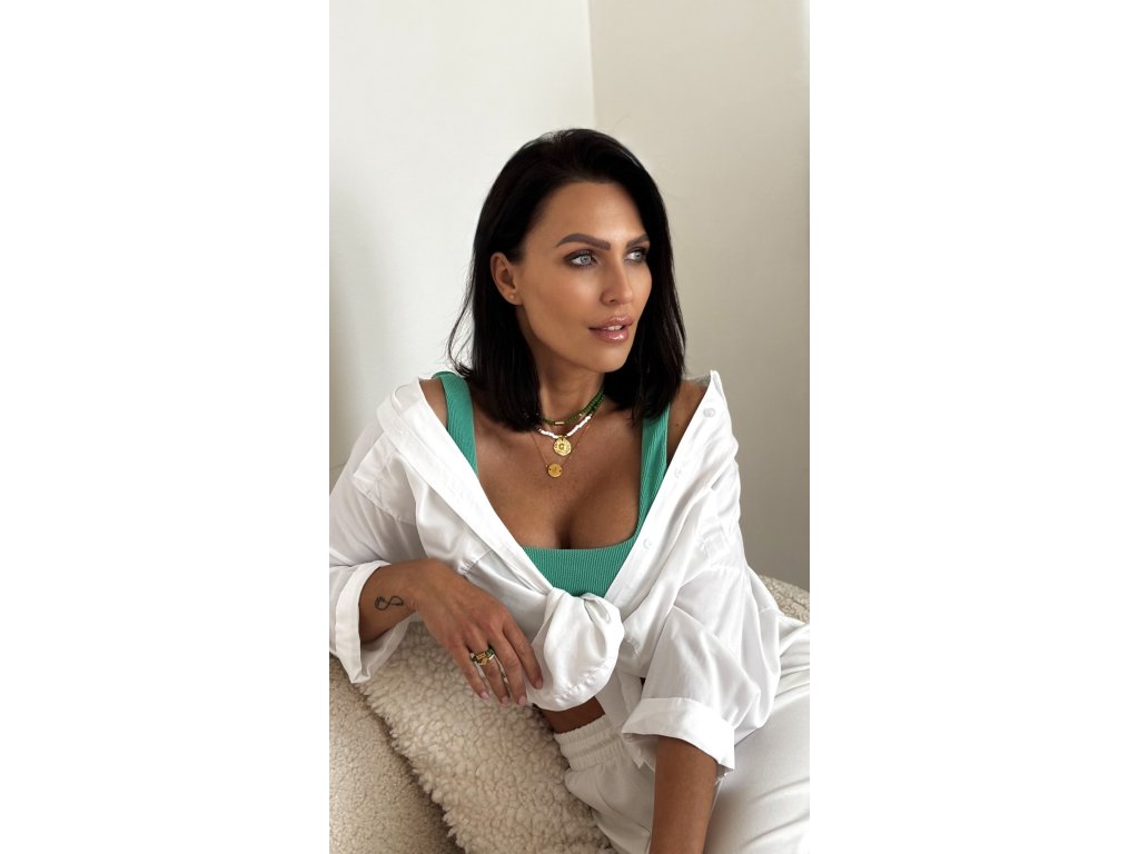 Nadčasová elegancia v jemne luxusnom prevedení. Aurora Verde je náhrdelník navrhnutý pre modernú ženu, ktorá si potrpí na detail. Spojenie sviežeho zeleného krištáľu, prírodných sladkovodných perál a minimalistických bielych korálok dopĺňa 18Kgold plated prívesok so symbolom slnka – výrazný akcent, ktorý z neho robí výnimočný doplnok.