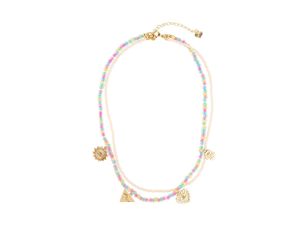 Tento náhrdelník ti pripomenie, kým si – a kam smeruješ. Vrstvy jemných farebných minerálov Myoki v kombinácii s detailami pozlátenými 18k zlatom vytvárajú harmonický celok, ktorý zvýrazní tvoju osobnosť bez slov.
