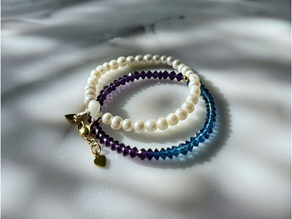 Minimalistický náramok navrhnutý pre ženy, ktoré milujú jemný luxus a vnútornú rovnováhu. Perla symbolizuje pokoj, čistotu a ženskú energiu, modrý kryštál podporuje uvoľnenie a vyrovnanosť a fialový kryštál je spojený s intuíciou a harmóniou.