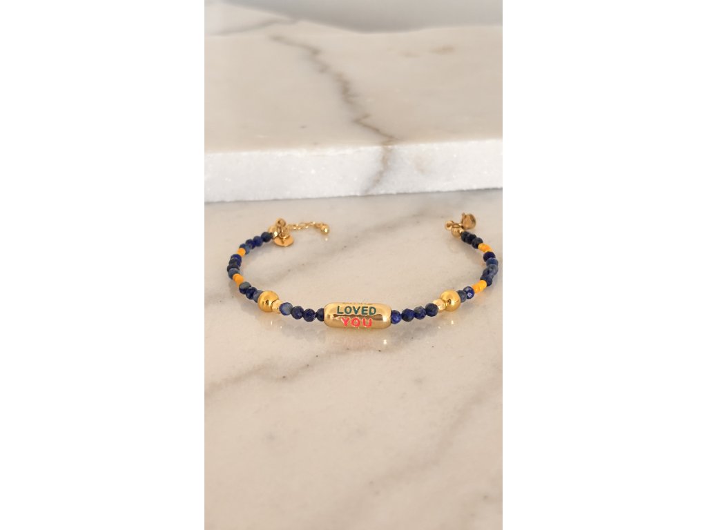 Spojenie hlbokého lapis lazuli, žiarivých brúsených žltých korálikov a 18K pozlátených detailov vytvára luxusný doplnok, ktorý rozžiari každý tvoj outfit.